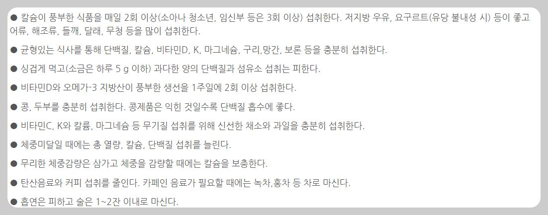 [ 대한골대사학회의 골감소증/골다공증 식사 지침]